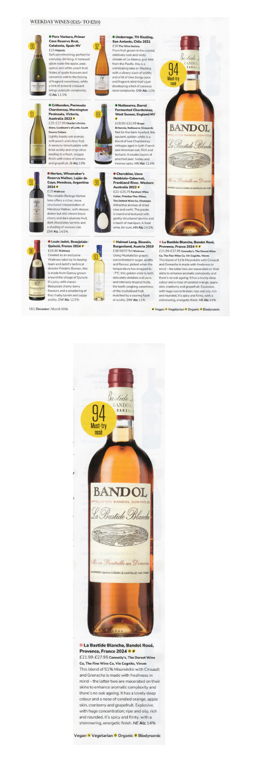 DECANTER FEV 26 -DOMAINE DE LA BASTIDEBLANCHE – BANDOL